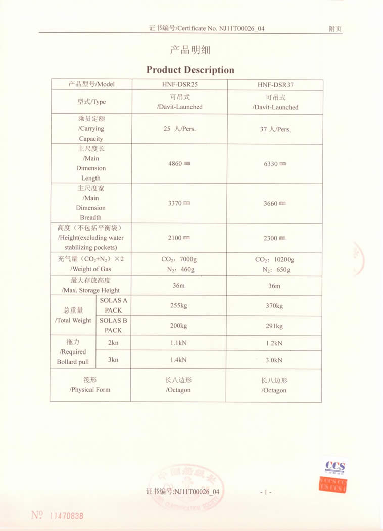HNF-DSR Self-righting and Davit launched inflatable liferaft