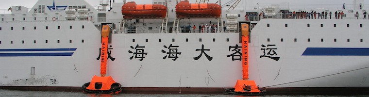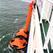 The inflatable liferaft is stowed in the liferaft container on the deck. When pulling the painter line, The liferaft is inflated in the sea.