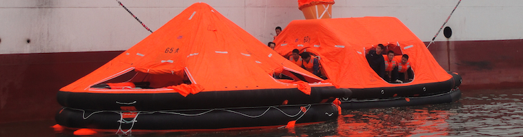 The inflatable liferaft is stowed in the liferaft container on the deck. When pulling the painter line, The liferaft is inflated in the sea.